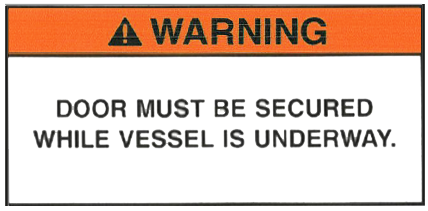 Warning Door must be secured while vessel is underway. |