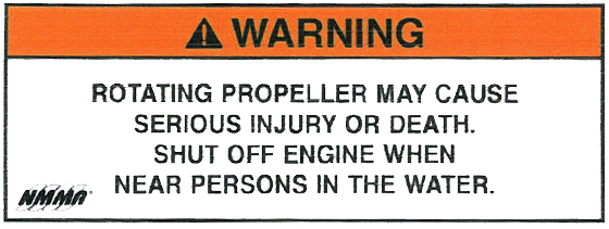 Warning Rotating propeller may cause serious injury or death. Shut off engine when near persons in water. |