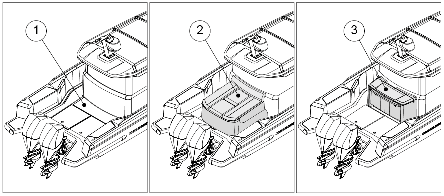 The boat has several deck options. The layout of the equipment and the technical components may vary depending on the chosen accessories.