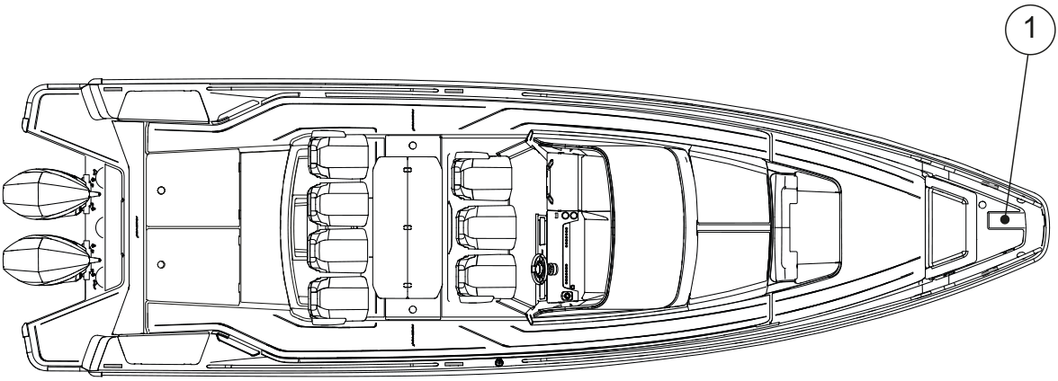 The water boiler is located in the bow of the boat, behind a sealed hatch in the anchor box.