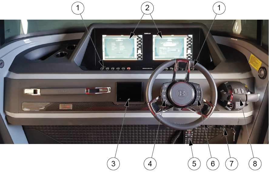 The location and quantity of the devices depend on what optional equipment and engine models have been chosen. See the device manuals for further information on the devices.