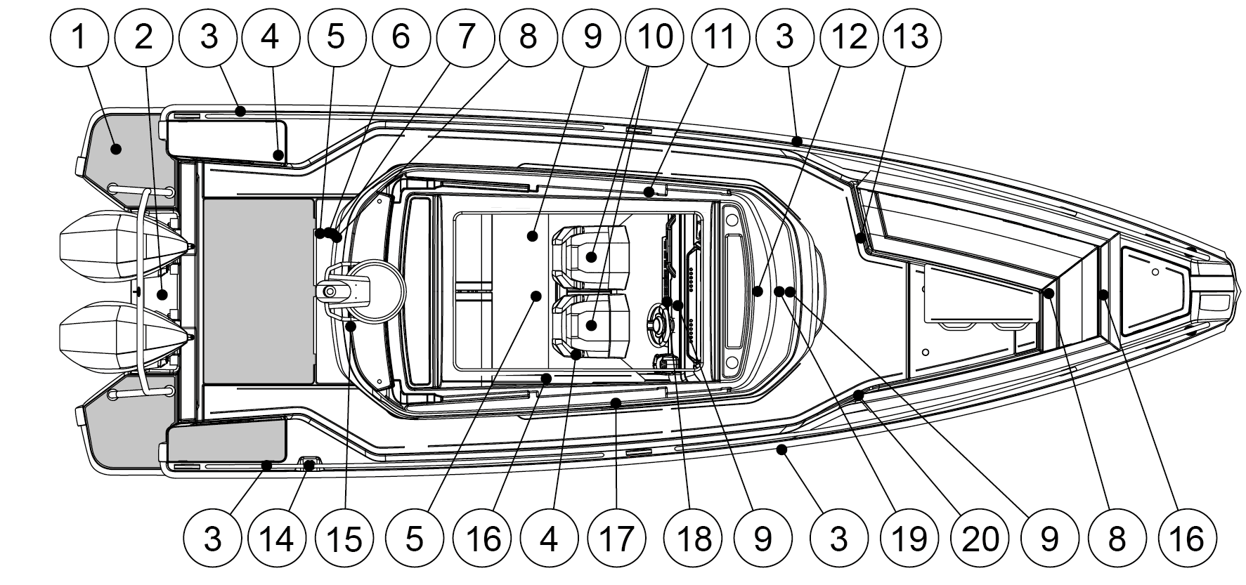 Warning Qualified operator to be in control at all times. Operation by an unqualified operator can cause loss of control. This may result in severe injury, death, or property damage. Boat stability and handling will change with weight distribution. Read owners manual before use. |