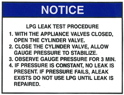 Warning Gasoline vapors are explosive! Avoid serious injury or death from fire or explosion, resulting from leaking fuel. Inspect system for leaks at least once a year. Contents can be under pressure. Open slowly in a well ventilated area. The use of fuels containing ethanol higher than 10% (E-10) can damage your engine or fuel system and will void the warranty. Never use (E-85). Open flame appliances can ignite gasoline vapors causing death or injuries from the fire or explosion. Turn off all open flame appliances when refueling. |
