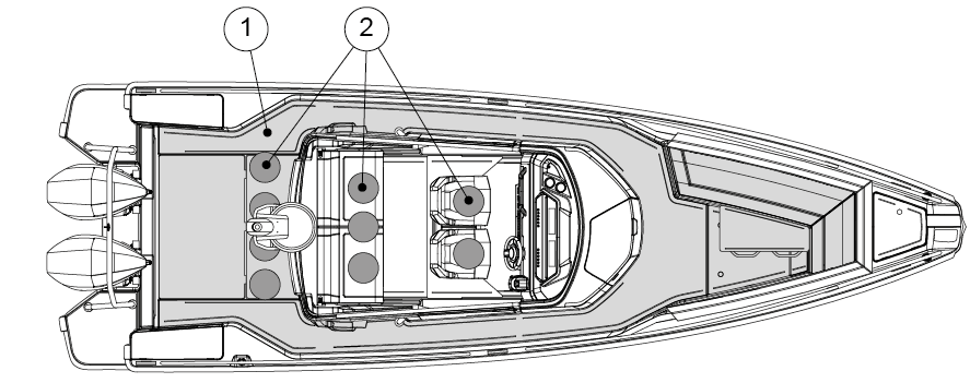 If the sun deck cushions or the front deck table are in place, observe the maximum speed of 15 knots to avoid the cushions or table detaching at speed or in high waves.