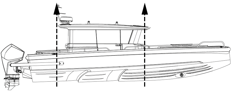 The lifting beam must be exactly the same width as the boat. Always take great precautions near and around the boat when lifting.