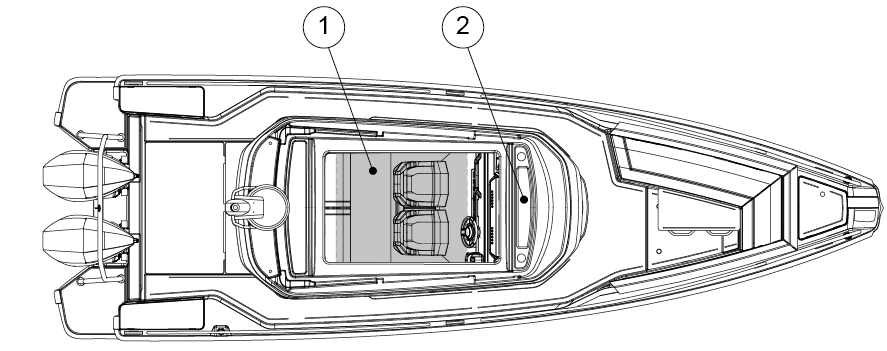 The boat has several deck options. The layout of the equipment and the technical components may vary depending on the chosen accessories.