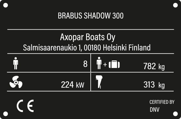 La plaque du constructeur est toujours installée à proximité du poste de pilotage du bateau.