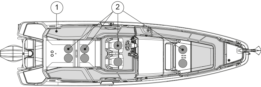 Si les coussins des bains de soleil ou la table sont installés sur le pont avant, respectez la vitesse maximale de 15 nœuds pour éviter que les coussins ou la table ne se détachent à grande vitesse ou en cas de fortes vagues.
