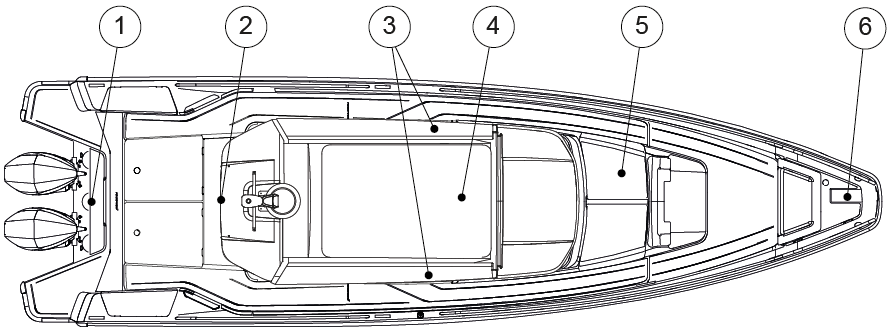There are several inlets through the boat that include valves for opening and closing such inlets. It is recommended to keep these inlets closed if the boat is out of use for a long time, and to open them again when the boat is used again. If the boat is lifted out from water or in rainy conditions, inlets should be kept open.