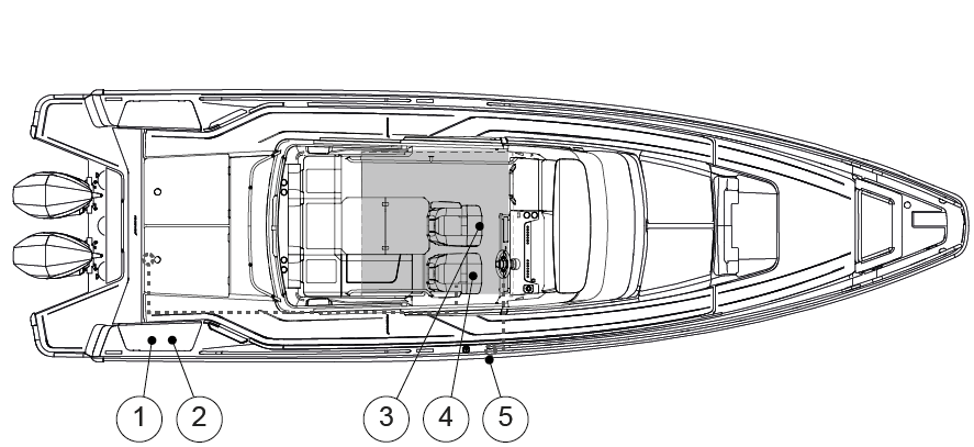 Remember that it is not allowed to store fuel in spaces not specifically designed for it. Since there is no ventilated storage space on this boat, possible spare fuel cans must be stored on deck.