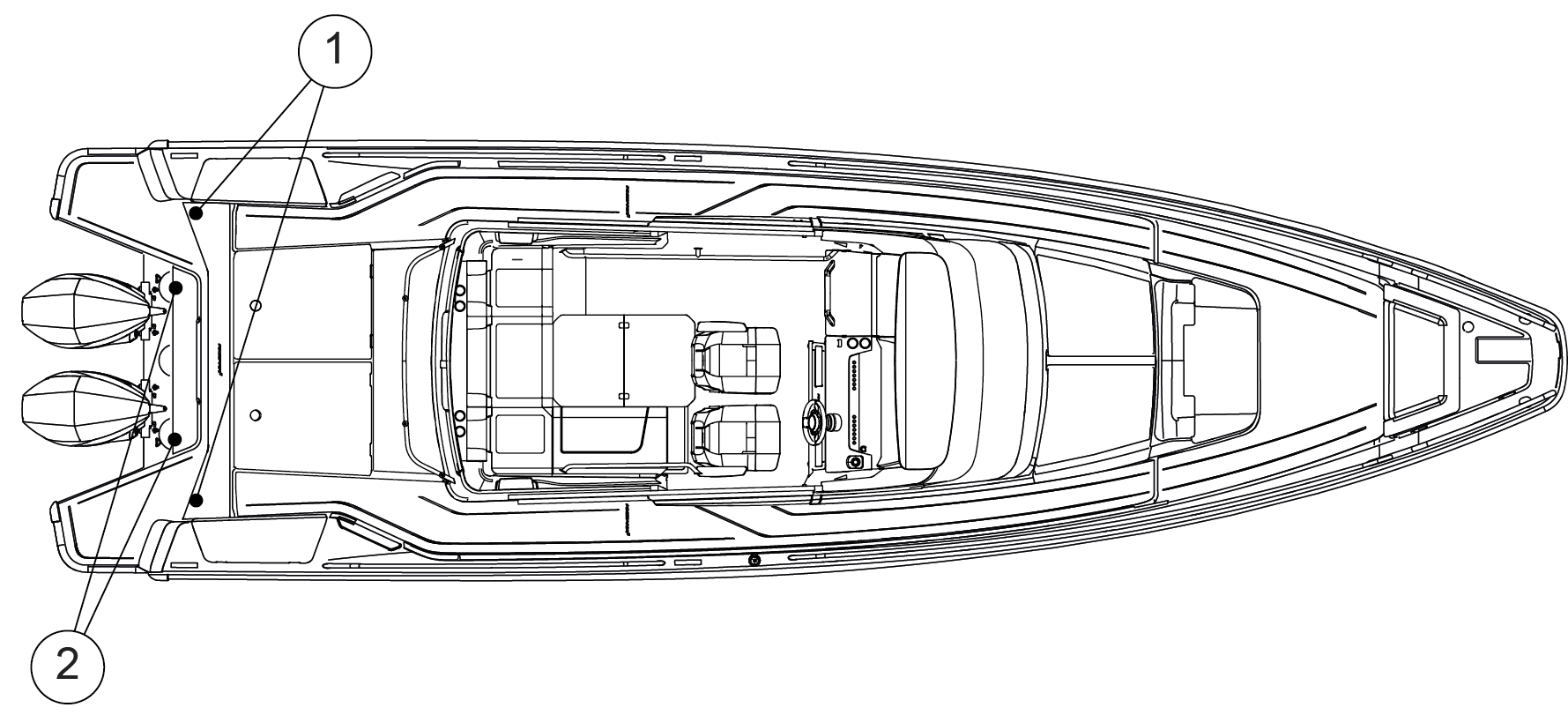 La figure indique les emplacements des passe-coques installés sur le bateau.