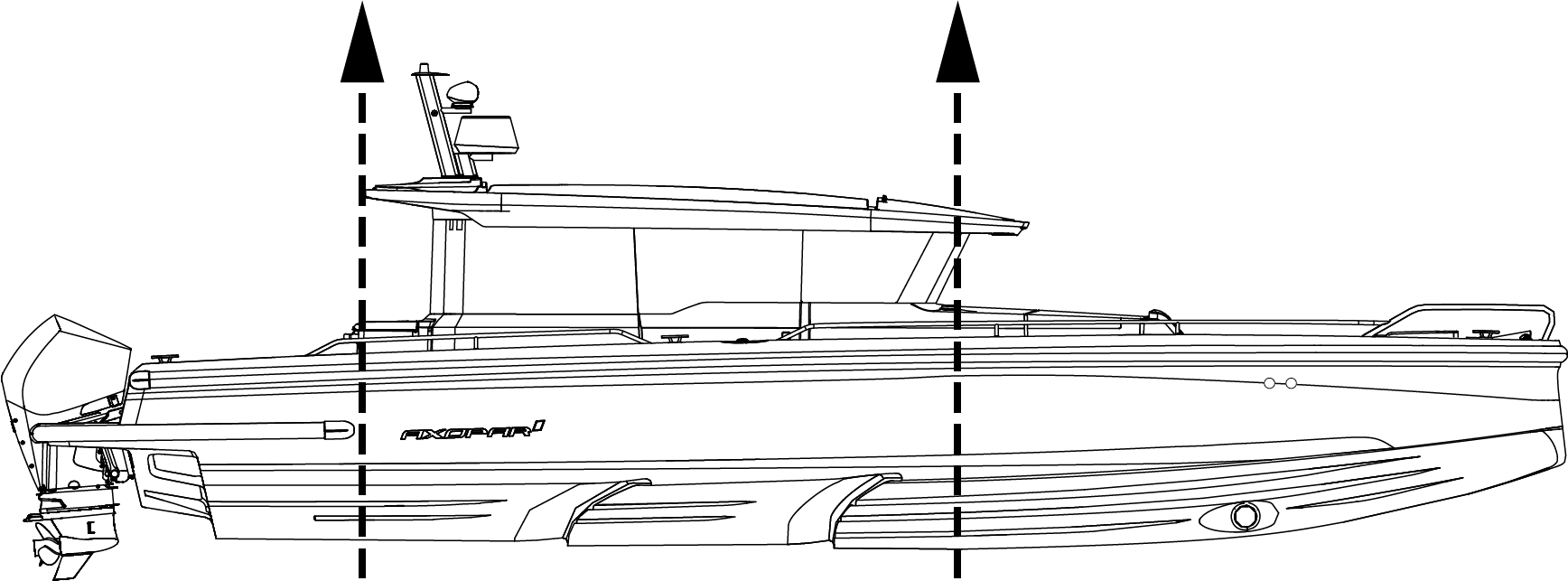 • Vérifiez les appendices à travers la coque tels que des compteurs de nœuds et des stabilisateurs, des rails de frottement, de pulvérisation et d’éclaboussure, afin qu’ils ne soient pas endommagés par l’équipement de levage.