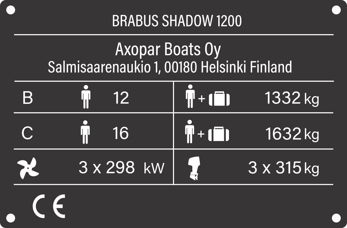 Maximum load: total weight of persons including personal luggage and basic equipment, and excluding tank contents