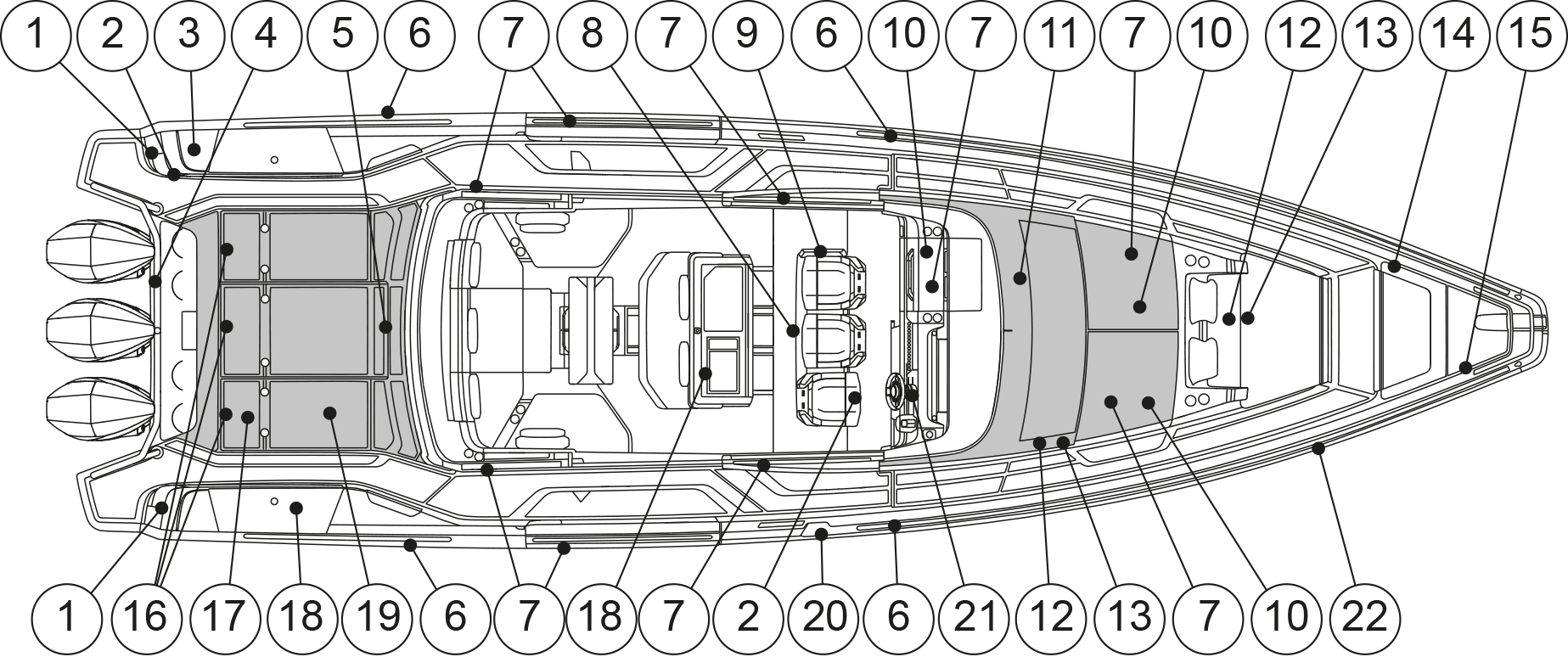 • The propellers may injure people in the water anywhere around the boat