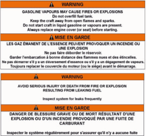 Do not start craft if liquid gasoline or vapours are present.