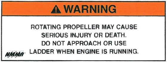 Rotating propeller may cause serious injury or death. Do not approach or use ladder when engine is running.