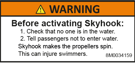 Skyhook makes the propellers spin. This can injure swimmers.