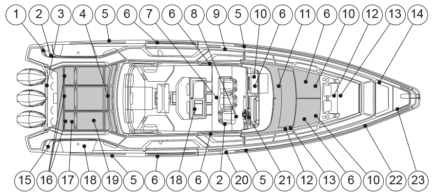 Warning Avoid personal injury. Stay inside deck rails (and gates) when boat is underway. |