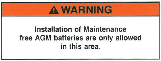 Warning Installation of maintenance free AGM batteries are only allowed in this area. |