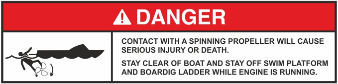 Danger Contact with a spinning propeller will cause serious injury or death. Stay clear of boat and stay off swim plaform and boarding ladder while engine is running. |