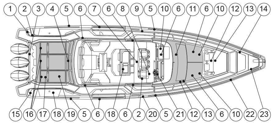 | Warning Avoid personal injury. Stay inside deck rails (and gates) when boat is underway. |