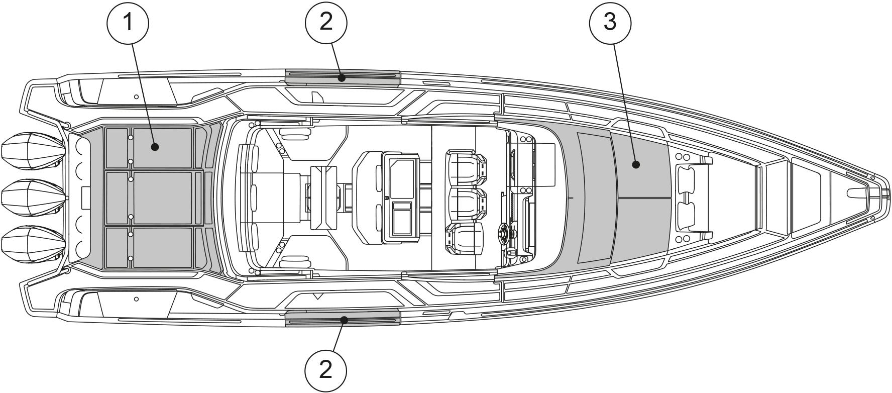 Le bateau a plusieurs options de pont. La disposition de l’équipement et des composants techniques peut varier en fonction des accessoires choisis.