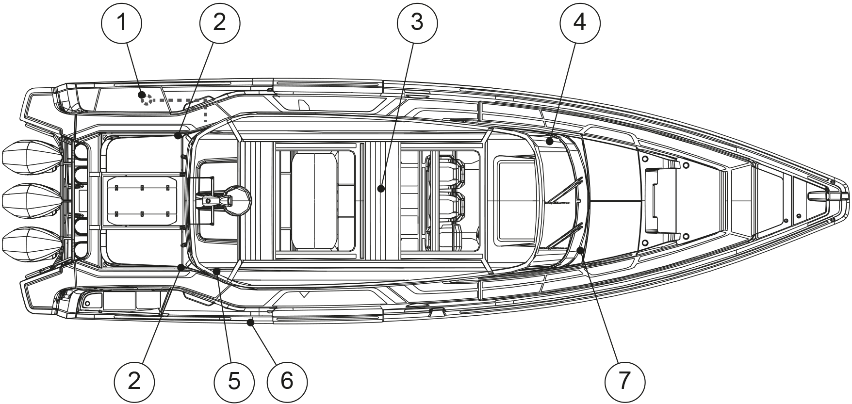 The freshwater system consists of two fresh water tanks joined with connecting pipe, pump, and filter. The fresh water tank is filled via the filling cap.