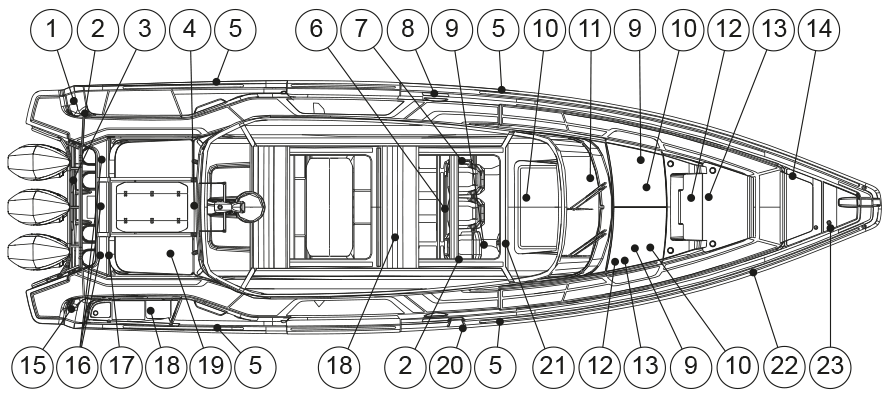 | Warning Avoid personal injury. Stay inside deck rails (and gates) when boat is underway. |