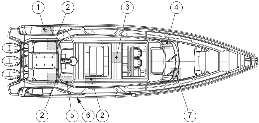 Réservoir d’eau douce (emplacement du réservoir tribord au milieu, s’il y a une cabine arrière dans le bateau)