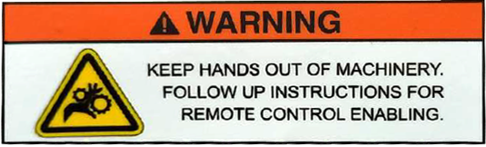 Avertissement N’approchez pas vos mains des machines. Suivez les instructions pour l’activation de la télécommande. |