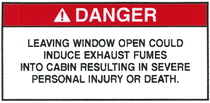 Danger Laisser la fenêtre ouverte pourrait provoquer l’arrivée de gaz d’échappement dans la cabine, entraînant des blessures graves, voire la mort. |