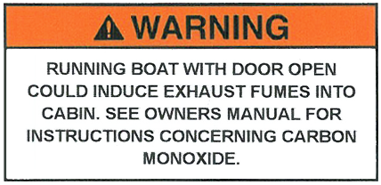 Avertissement Un bateau en marche avec la porte ouverte pourrait provoquer l’arrivée de gaz d’échappement dans la cabine. Consultez le manuel du propriétaire pour obtenir des instructions en ce qui concerne le monoxyde de carbone. |